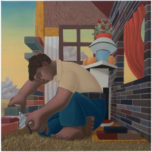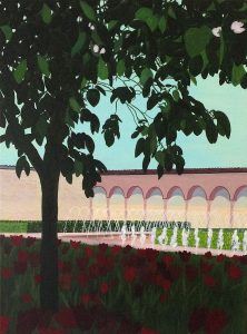 Kathrin Schötz‚ aktuelle Malereien sind geprägt von einem durchdringenden Abendlicht. Die klaren und genau beobachteten Kontraste zwischen Naturelementen und Bebauung zeugen von einem empfindsamen Gespür für die Wahrnehmung von Natur. Ihre feinsinnige Übersetzung von atmosphärischen Begebenheiten in eine detailreiche Zeichnung macht ihre Malerei einzigartig und kraftvoll.