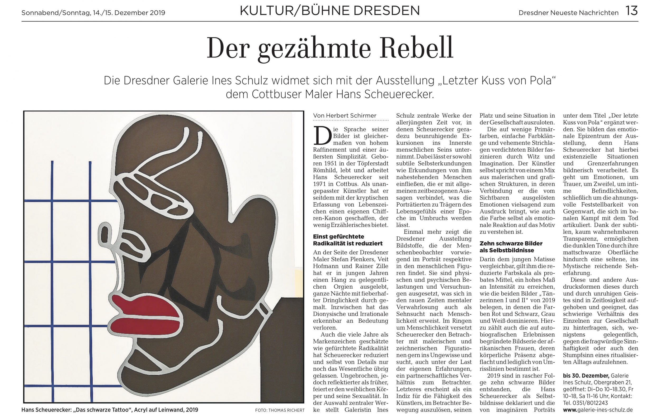 In der Ausgabe vom 23.05.2023 der DRESDNER NEUESTE NACHRICHTEN erschien eine Rezension des Berliner Kunsthistorikers und Kurators Christoph Tannert.